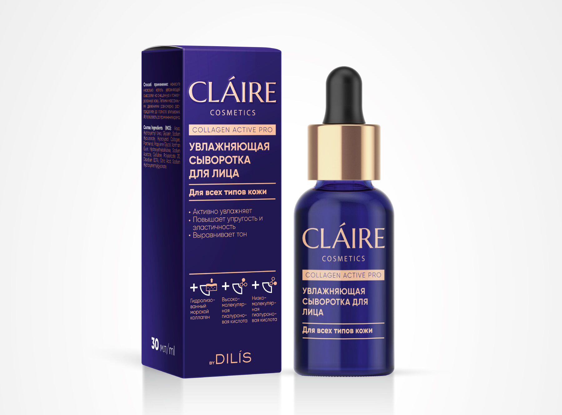 Низкомолекулярная гиалуроновая кислота проникает в глубокие слои кожи, насыщая ее влагой, кислородом, питательными веществами.